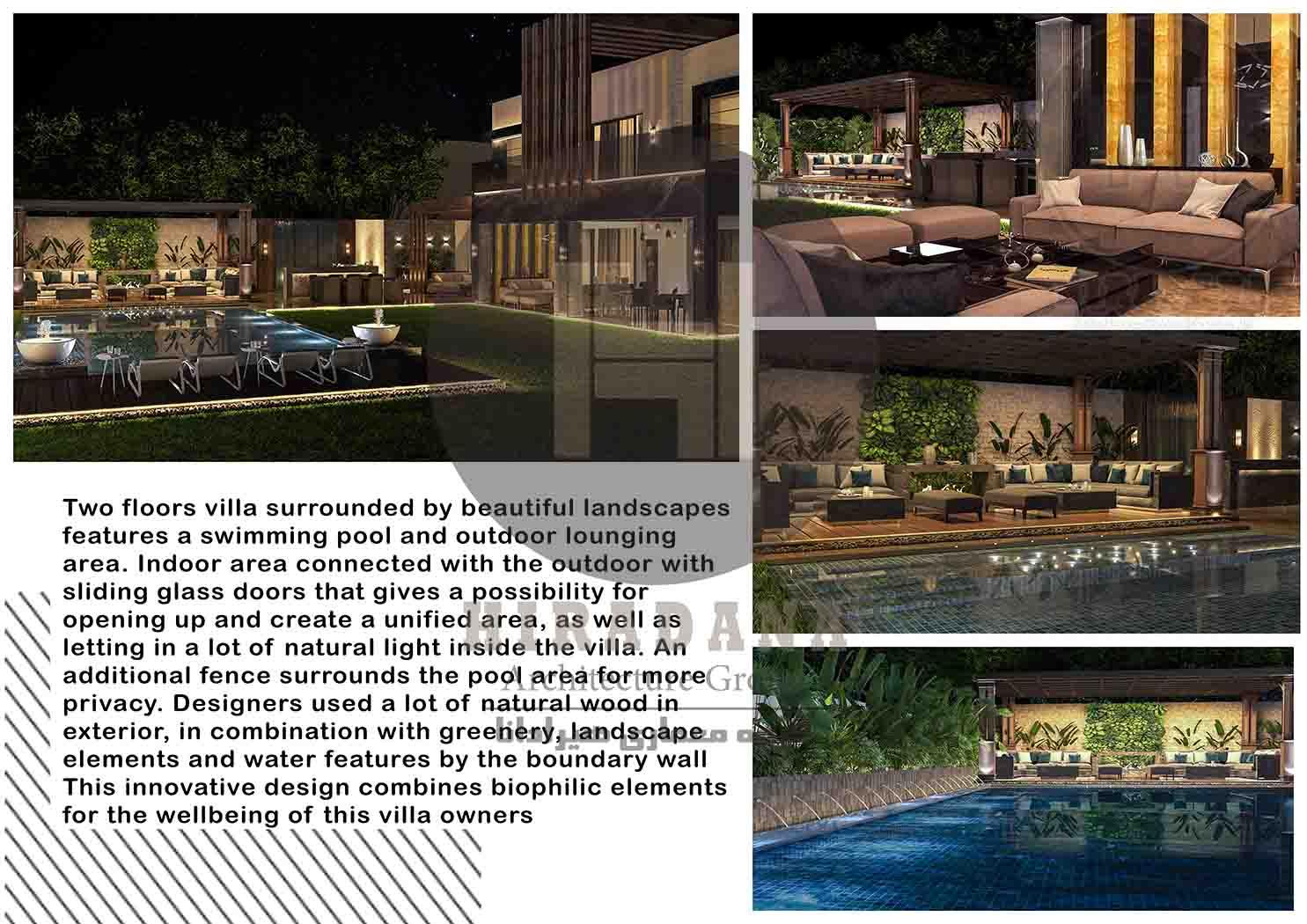شرکت معماری و معماری داخلی هیرادانا با تجربه های متعدد در زمینه های طراحی ویلا ، بازسازی ویلا ، طراحی نمای ویلا ،دکوراسیون داخلی ویلا ، روف گاردن و محوطه و مشاعات آنها آماده ارائه ی خدمات به مشتریان و کارفرمایان گران قدر خود خواهد بود .